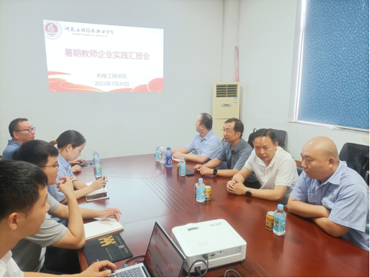 为总结教师企业实践成效,分享教师企业实践收获,进一步落实教育部等七部门印发的《职业学校教师企业实践规定》,规范教师进企业实践活动,提高教师专业发展,提升教师实践教学能力,全面推进师资队伍建设。7月20日,我院在新乡市辉县波兴模具有限公司举行教师企业实践锻炼汇报会。学院院长黄双成、教务处副处长付永以及机电工程学院的6名参加企业实践锻炼教师参加了汇报会。会议由工业机器人教研室主任郜海超同志主持。