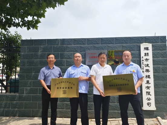为进一步推动产业与教育的融合发展,提升教师职业素养与实践能力,促进学校教师和企业提供良好的合作机会,共同培养适应未来社会需求的高素质技术技能型人才。2023720日上午,机电工程学院院长黄双成、副院长李凤银和教务处副处长付永一同前往河南省辉县市,与辉县市波兴模具有限公司副总经理李瑞共同完成了校外实训基地和教师企业实践流动站的挂牌仪式。