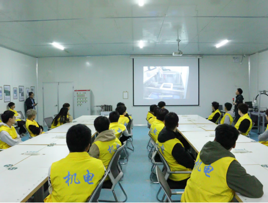 参观过后,公司为同学们带来了一场生动的体验课。课堂上,企业讲师围绕公司的专利技术,结合视频展示了专利技术在生产、安全防护领域的具体应用,并针对脱模、打钉等细节问题进行了详细讲解重点详细介绍了企业自行设计的真空氮气机。随后,学生们进入研发中心的组装场地,就地取材,就视频中出现的设备进行了现场观摩