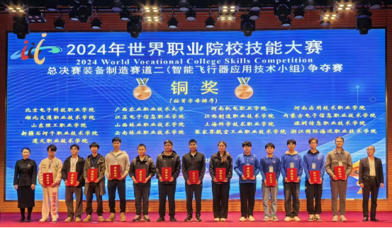 2024 年10月27-282024年世界职业院校技能大赛总决赛于潍坊职业技术学院盛大启幕此次大赛是职业院校技能领域的顶级盛会赛前已备受瞩目,共吸引了来自全国各地众多知名院校59支精英团队汇聚一堂,开展巅峰对决。经过近两天的高强度、高难度比拼角逐,机电工程学院梅二召李俊杰两位教师所带领的学生团队凭借精湛专业技能以及高度默契的团队协作精神,在首次参加高职组装备制造二赛道智能飞行器赛项中并斩获决赛铜奖实现了新赛道的新突破