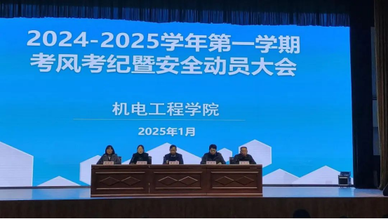 临近期末,考试将近,为鼓励学生树立诚信的良好品质,坚持严谨求实的学习态度,杜绝一切考试作弊行为,维护良好的考试纪律,诚信应考,2025年1月2日,机电工程学院2024-2025学年第一学期考风考纪暨安全动员大会在学生活动中心召开。院长黄双成、党总支书记贾建树、副院长李凤银、副书记耿丽敏、团总支书记郭娇娇以及2023级、2024级全体辅导员和学生代表参加了此次会议,会议由团总支书记郭娇娇主持。