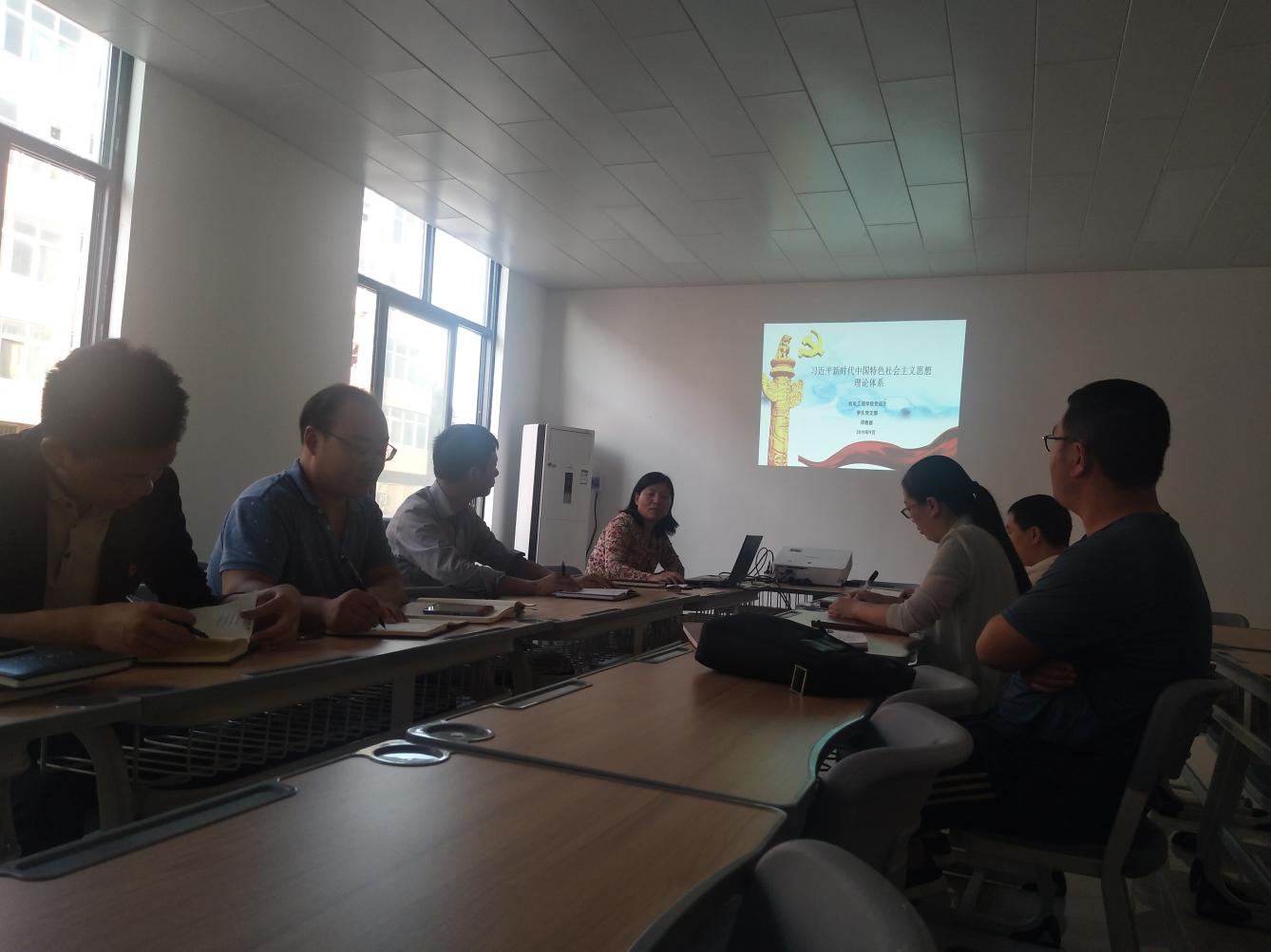 2019年9月25日下午,机电党总支学生党支部书记邓艳丽同志在党员活动室A212为学生党支部党员上了一堂主题为《习近平新时代中国特色社会主义思想理论体系》的党课。
