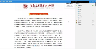 黄双成同志最后强调,全体同志要深刻领悟红旗渠精神的重要意义,要提高政治站位,强化政治担当;要大力弘扬“自力更生、艰苦创业、团结协作、无私奉献”的红旗渠精神,稳步扎实推进当前疫情防控和日常教学工作,使用“红旗渠精神”强力推进学院“双高“建设任务落实,奋力谱写学院事业发展新篇章。