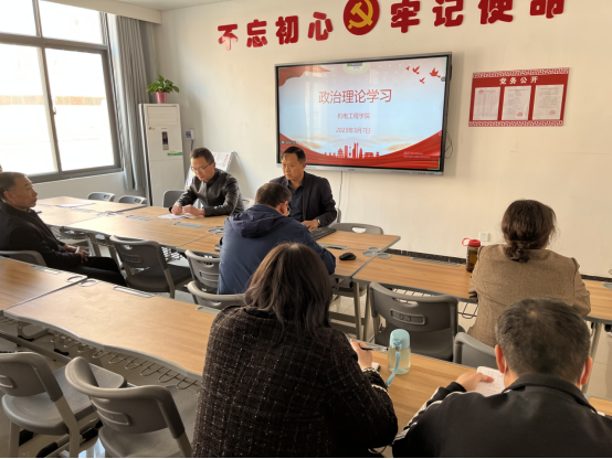 2023年3月7日,机电工程学院在A212党员活动室召开了2023年上半年第三次政治理论学习,学院全体教职工参加了本次会议,会议由学院党总支书记张亮主持。