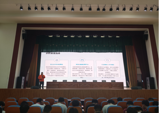 为提升学生的就业竞争力,更加从容地面对未来的就业挑战,开启精彩的职业征程,2025年4月10日,机电工程学院特邀广东鼎泰高科技术股份有限公司校园招聘经理贾路遥,为23级全体学生开展了一场精彩纷呈的职业引导与面试技巧专题培训。