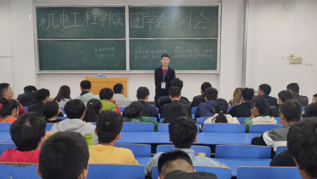 经过近一个月的宣传、报名、选拔,机电工程学院团学会顺利完成了2019年纳新工作。2019年10月11日中午12点40分,在B楼101教室举行了学院新一届团学会第一次例会。出席本次会议的有学院党总支副书记邓艳丽、学院学工部主任侯小兵、学院团总支书记常惟诚及全体团学会成员。