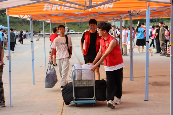 9月9日,迎新工作正在如火如荼地进行中。初次见面,为了保障萌新们能够顺利找到报到地点以及宿舍,机电工程学院设立了多个志愿者接待点,服务来往新生。学长学姐热情帮助新生引路,为他们保驾护航。灼日炎炎,志愿者们热情不减,将爱与温暖带到新生身边,希望你们将温暖延续。