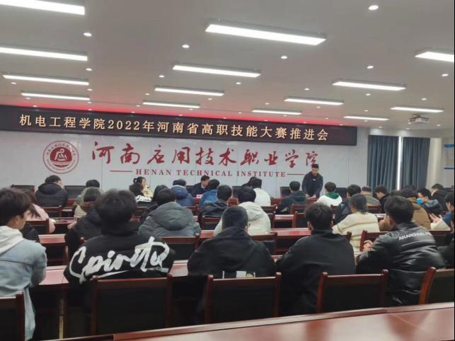 受疫情影响推迟举办的2022年河南省高职技能大赛将于2023年3月上旬密集开赛,为加强我院备赛管理工作,做好赛前组织协调,鼓舞师生斗志,2月24日中午在一号实训楼六楼会议室召开竞赛推进会。机电工程学院院长黄双成、副院长李凤银、各赛项指导教师和备赛学生参加会议,机电工程学院党总支副书记耿丽敏主持会议。