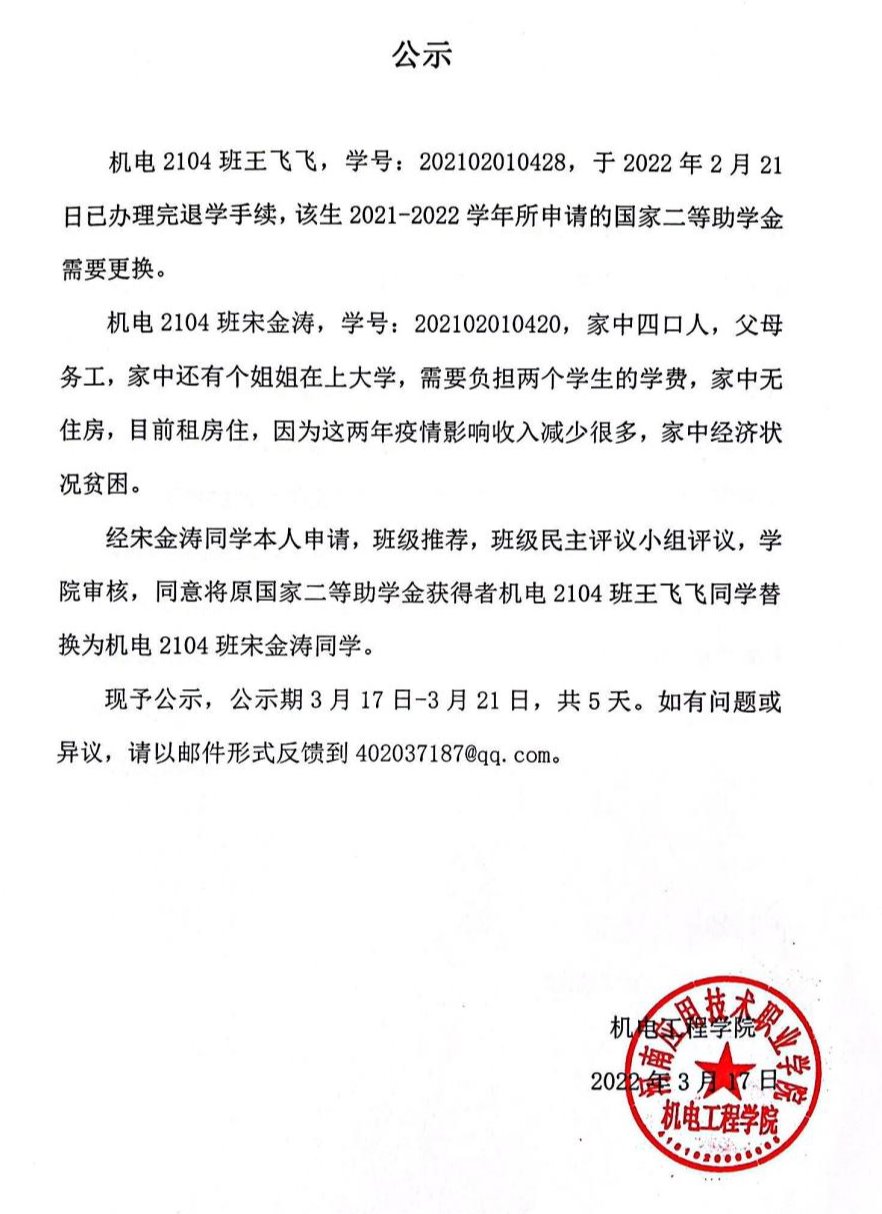 上一条:机电工程学院拟推荐2022年省级、校级优秀应届毕业生名单公示
